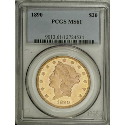 <B>1890 $20 MS61 PCGS.</B></I> PCGS Population (153/211). NGC Census: (157/161). Mintage: 75,995. Numismedia Wsl. Price for NGC/PCGS coin in MS61: $1,040. (#9013)<BR><BR><B>Coin Engraver:</B> James B. Longacre<BR><BR><b>Shipping:</b> Coins & Currency (<a target="_blank" href="http://www.heritageauctions.com/common/shipping.php">view shipping information</a>)