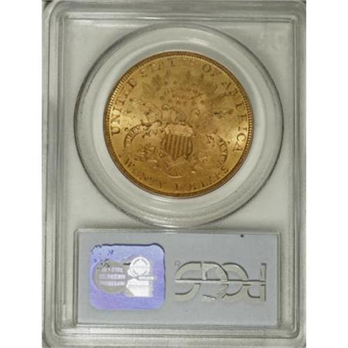 <B>1890 $20 MS62 PCGS.</B></I> The obverse is predominantly orange-gold, though the reverse shows a bit more yellow. Well-defined and satiny with a measure of copper at the obverse highpoints. PCGS has graded 31 finer pieces (11/07).<BR><BR><B>Coin Engraver:</B> James B. Longacre<BR><BR><b>Shipping:</b> Coins & Currency (<a target="_blank" href="http://www.heritageauctions.com/common/shipping.php">view shipping information</a>)