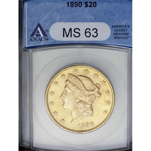 <B>1890<$20> MS63 ANACS.</B></I> A lustrous honey-gold example with sharp design details and excellent eye appeal. Both sides of this important Mint State coin have frosty surfaces. Only 75,995 examples of this date were struck, making it one of the lower mintage issues of the entire Liberty double eagle series. It is also a condition rarity in MS63 or finer grades.