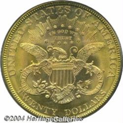 <table><tr><td><table><tr><td>1890 $20 MS64 PCGS. This shimmering Double Eagle has rich orange and gold luster that cascades from the surfaces on both sides. Very few abrasions are present, and the only flaw that seemingly keep this beautiful piece from a Gem grade is a carbon toning streak that is present near Liberty's forehead. This low-mintage issue is one of the scarcer P-mint issues of the late nineteenth century in high grades. No pieces have been certified any finer by PCGS. Population: 5 in 64, 0 finer (3/04). <BR><BR><B>Important notice:</B> Heritage usually auctions material at the rate of 200-250 lots per hour. On some occasions eBay Live bid software or the Internet may not be able to keep up with the pace of the auction. We recommend placing a realistic absentee bid now as insurance to avoid disappointment. Occasionally the auctioneer may eliminate or reject an eBay Live bid, and the auctioneer may also reopen a lot after the close of the eBay live bidding (usually because we missed an audience bid), and may reject your bid even if it shows you as the winning bidder. By bidding via eBay Live, you agree that Heritage may award the lot to another bidder at its sole discretion under the circumstances described above or any other reasonable circumstances. Since eBay bids are not shown to us until we open the lot on the floor, we treat those bids just like floor bids. In most cases the floor responds before the eBay bid is presented to us, due to Internet lag time, so for consistency we have made it a policy that floor bids are always considered first over tie eBay live bids. Also please note that all Heritage lots purchased through eBay Live carry a 20% Buyer's Premium. Please make sure you read the Terms and Conditions before you bid. <BR><BR><B>IMPORTANT ANNOUNCEMENT ABOUT RESERVES:</B> Heritage now divulges all reserves on its web site 7 days before every auction. If you want to know whether the reserve on this lot has been met, and if not, what the reserve amount is, please visit this lot page on the HeritageCoin.com web site, or email: bid@HeritageGalleries.com </span></font></td></tr></table></td></tr></table>