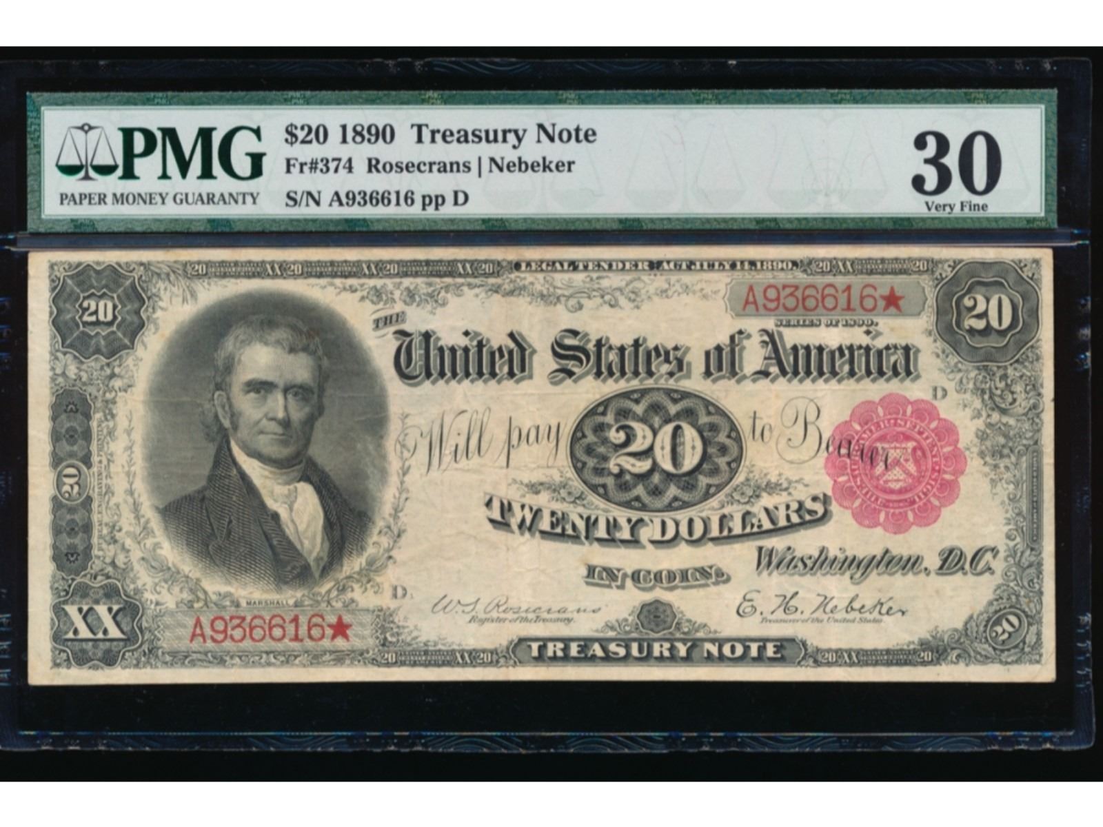 One 1890 $20 Treasury Note PMG 30.