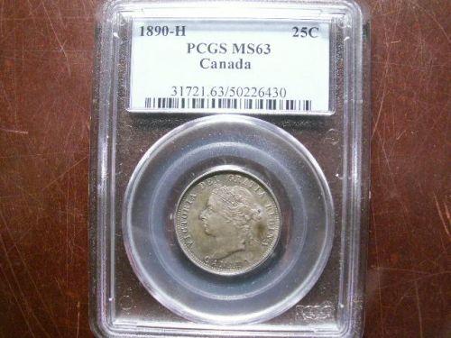 1890 25¢ PCGS MS63. Superb toning over full underlying lustre. A scarce date!