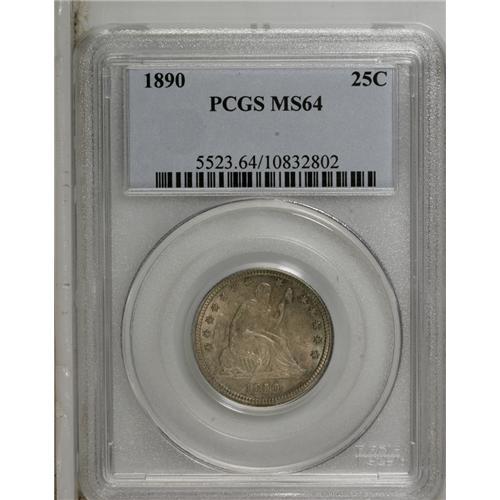 1890 25C MS64 PCGS. Choice and subtly lustrous beneath