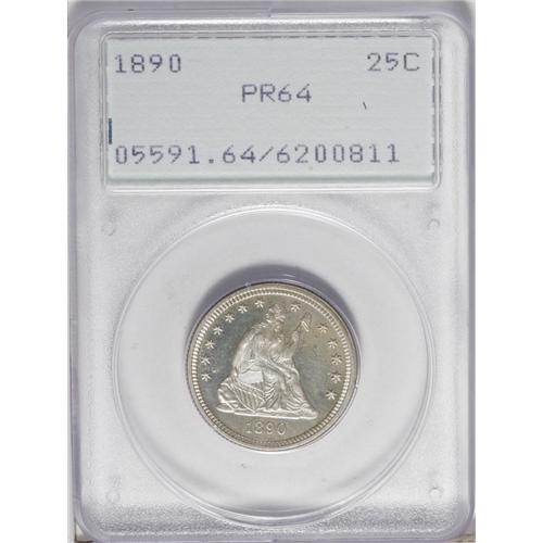 1890 25C PR64 PCGS. Choice and moderately reflective b