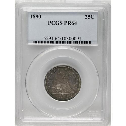 <B>1890 25C PR64 PCGS.</B></I> The obverse possesses dusky golden-gray patina, while thinner blue and plum toning blankets the reverse. A Choice survivor from a mintage of just 590 proofs.<BR><BR><b>Shipping:</b> Coins & Currency (<a target="_blank" href="http://www.heritageauctions.com/common/shipping.php">view shipping information</a>)