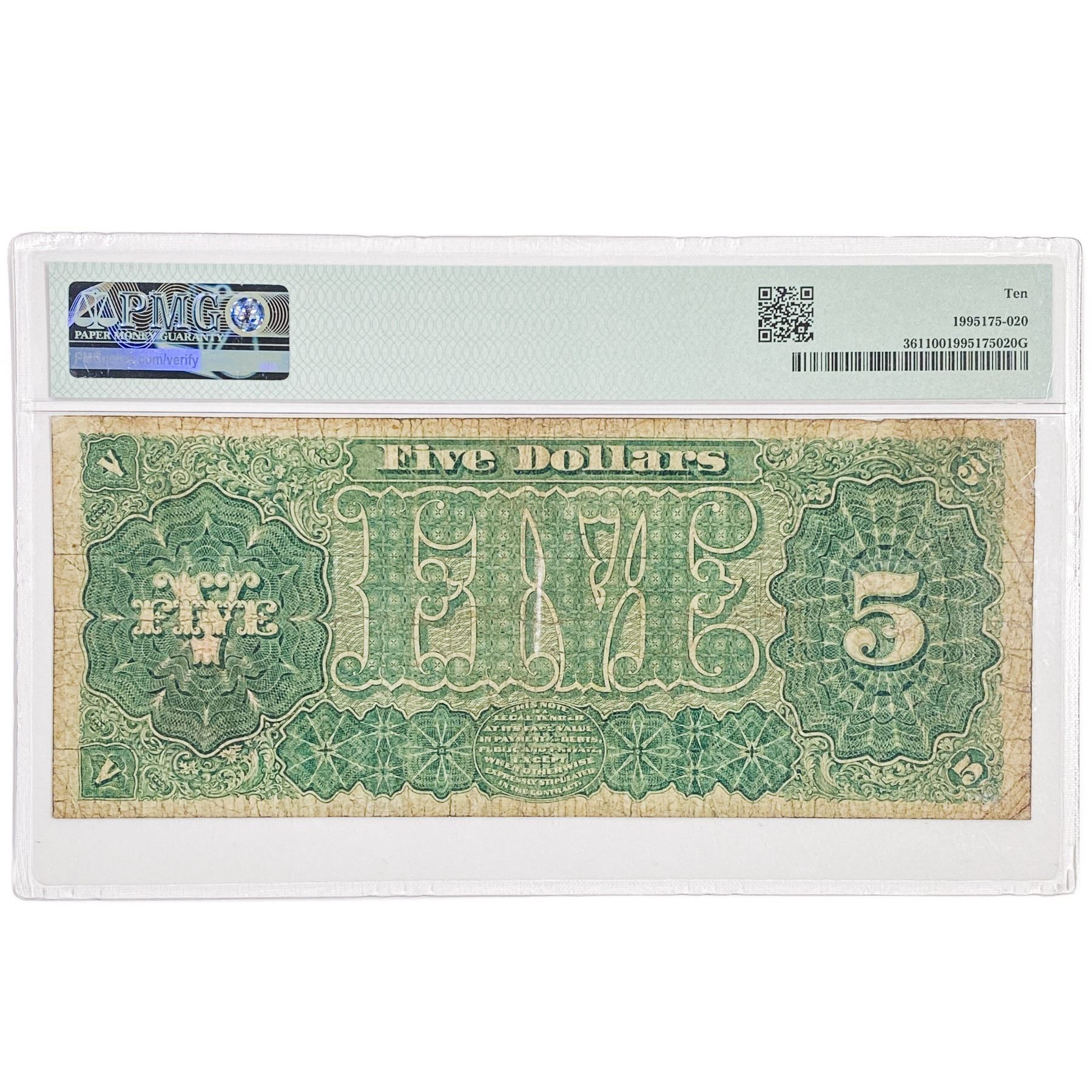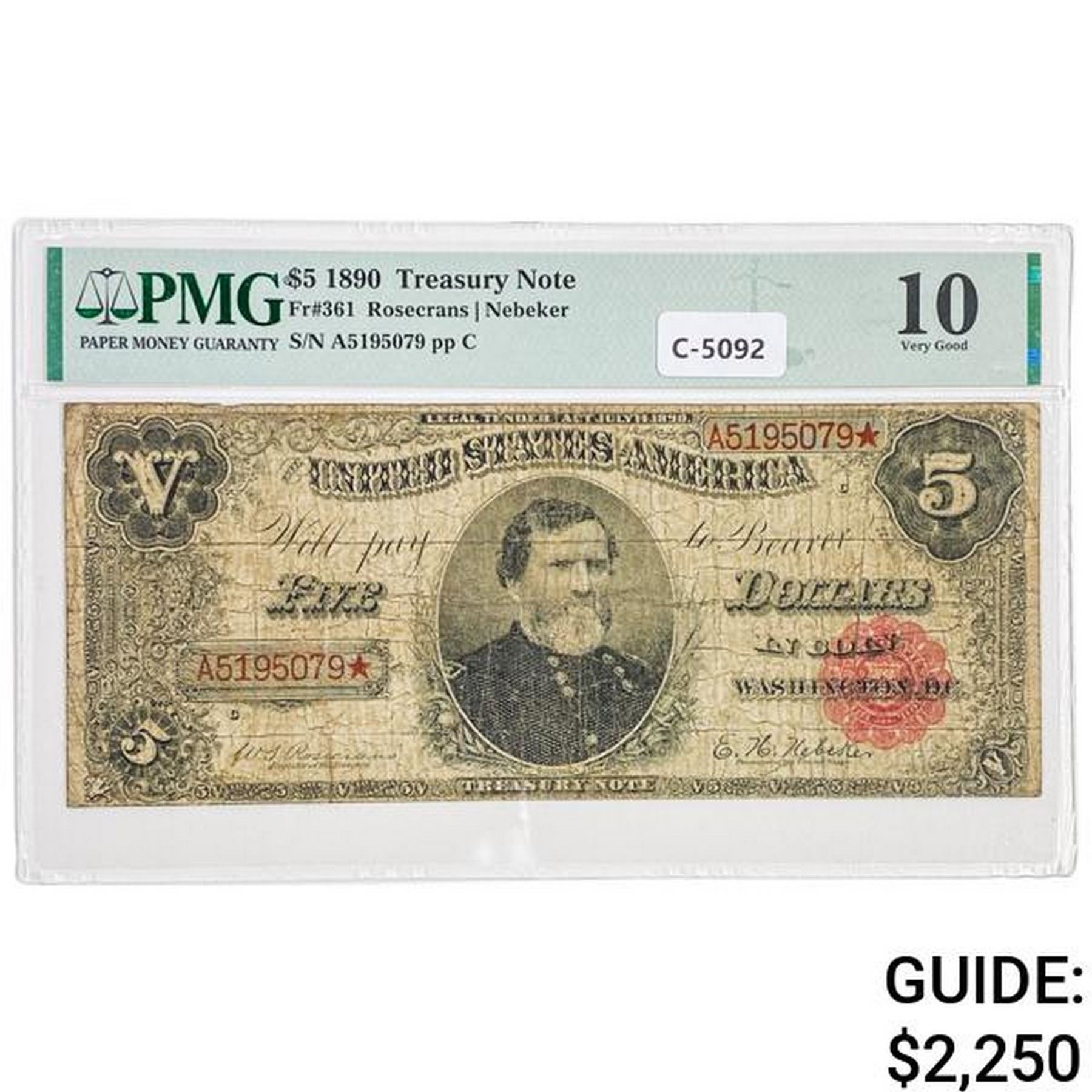 1890 $5 "THOMAS" TREASURY NOTE PMG VG-10