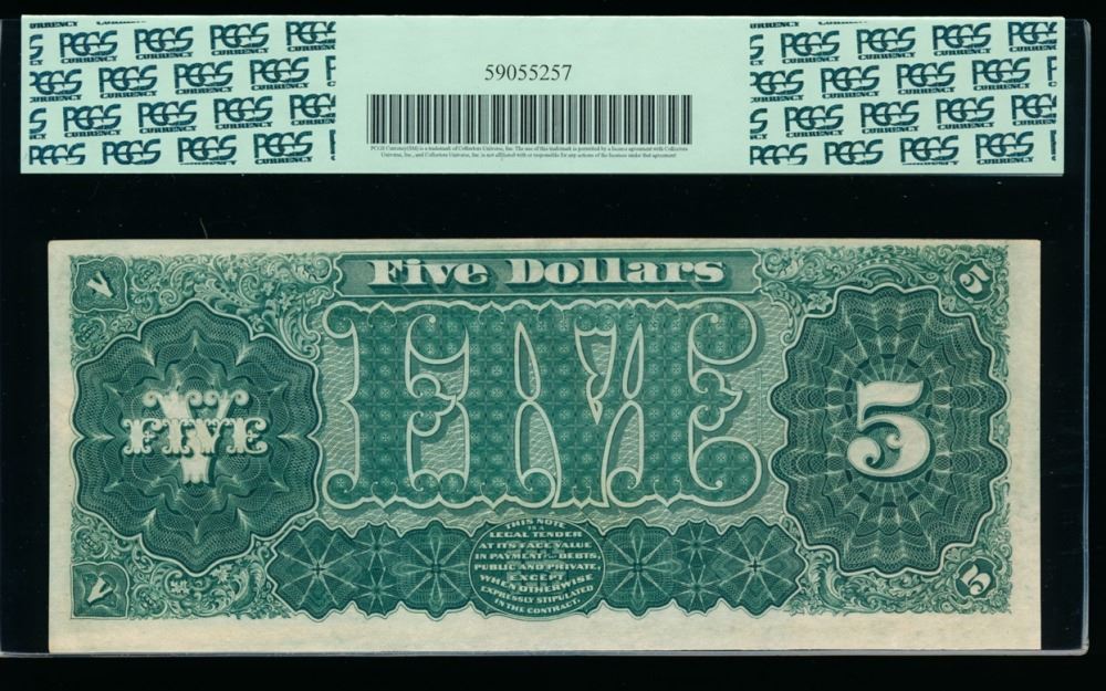 One 1890 $5 Treasury Note PCGS 63.