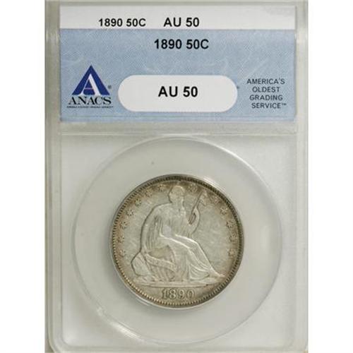 <B>1890 50C AU50 ANACS.</B></I> . NGC Census: (0/64). PCGS Population (1/93). Mintage: 12,000. Numismedia Wsl. Price for NGC/PCGS coin in AU50: $475. (#6372)<BR><BR><B>Coin Engraver:</B> Christian Gobrecht<BR><BR><b>Shipping:</b> Coins & Currency (<a target="_blank" href="http://www.heritageauctions.com/common/shipping.php">view shipping information</a>)