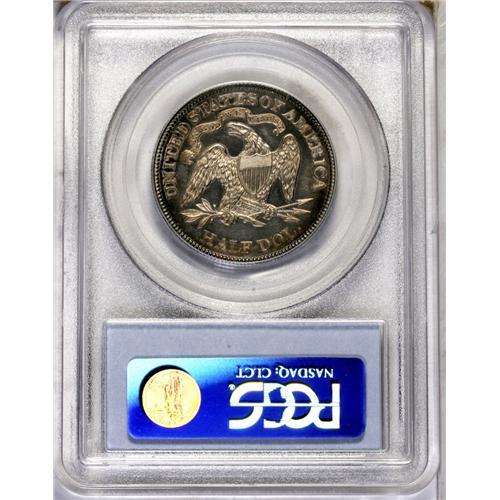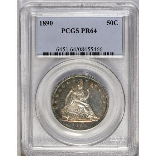 <B>1890<50C> PR64 PCGS.</B></I> A boldly impressed example with unfathomably deep mirrors. Violet and orange-gold patina covers much of the obverse and reverse peripheries. Great eye appeal, though a few small hairlines preclude Gem status.<BR><I>From The Stephen Stokely #1 PCGS Registry Set of Proof Seated Half Dollars.</B></I>