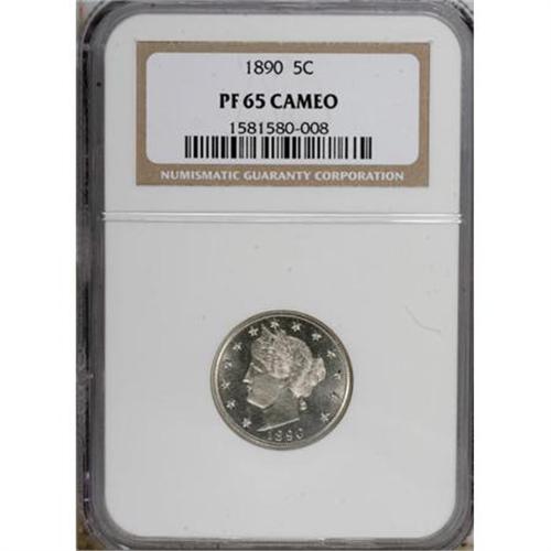 <B>1890 5C PR65 Cameo NGC.</B></I> NGC Census: (21/17). PCGS Population (15/5). (#83888)<BR><BR><b>Shipping:</b> Coins & Currency (<a target="_blank" href="http://www.heritageauctions.com/common/shipping.php">view shipping information</a>)