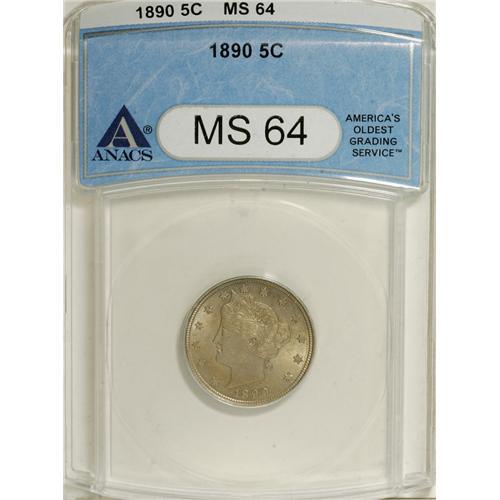 1890 5C MS64 ANACS. NGC Census: (100/50). PCGS Pop