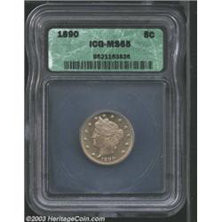 <TABLE cellSpacing=0 cellPadding=0 width="100%" bgColor=#000000 border=0><TBODY><TR><TD width="100%"><TABLE cellSpacing=1 cellPadding=3 width="100%" border=0><TBODY><TR><TD width="100%" bgColor=#79735c><FONT face=arial color=#ffffff size=3><B>Description</B> </FONT></TD></TR><TR><TD width="100%" bgColor=#ffffff><FONT face=arial size=2><B>1890 5C MS65 ICG.</B></I> Vivid peach and champagne colors. This nicely struck Gem has semi-prooflike luster and relentlessly unabraded surfaces. A scarcer issue example with no shortage of eye appeal. </FONT></TD></TR></TBODY></TABLE></TD></TR></TBODY></TABLE><BR><A name=PricesRealized></A><TABLE cellSpacing=0 cellPadding=0 width="100%" bgColor=#000000 border=0><TBODY><TR><TD width="100%"><TABLE cellSpacing=1 cellPadding=3 width="100%" border=0><TBODY><TR><TD width="100%" bgColor=#79735c><A name=PR><FONT face=arial color=#ffffff size=3><B>Previous Prices from Heritage Auctions</B> </FONT></A></TD></TR><TR><TD bgColor=#f6f6ed><TABLE cellSpacing=0 cellPadding=0 width="100%" border=1><TBODY><TR><TD align=middle width="33%"><B>Date</B></TD><TD align=middle width="33%"><B>Service</B></TD><TD align=middle width="33%"><B>Price</B></TD></TR><TR bgColor=whitesmoke><TD width="33%"><B>06/01/1996</B></TD><TD width="33%">PCGS</TD><TD width="33%">$577.50</TD></TR><TR bgColor=whitesmoke><TD width="33%"><B>01/11/2003</B></TD><TD width="33%">NGC</TD><TD width="33%">$1,161.50</TD></TR><TR bgColor=whitesmoke><TD width="33%"><B>04/23/1999</B></TD><TD width="33%">NGC</TD><TD width="33%">$862.50</TD></TR><TR bgColor=whitesmoke><TD width="33%"><B>05/03/2003</B></TD><TD width="33%">NGC</TD><TD width="33%">$1,265.00</TD></TR></TBODY></TABLE></TD></TR><TR><TD bgColor=#ffffff><FONT face=arial size=1 ?>PLEASE NOTE: All prices realized reflect the final hammer price PLUS the buyer's premium in auctions that charge a buyer's premium. Each item has a notation at the top of the listing indicating whether that lot included a buyer's premium. Example: A item that sells with a final hammer price of $100 and a 20% buyer's premium will display with a price realized of $120. All information listed is intended to be as accurate as possible, but errors are possible. Please use this guide carefully and inform us of any inaccuracies. </FONT></TD></TR></TBODY></TABLE></TD></TR></TBODY></TABLE><BR><TABLE cellSpacing=0 cellPadding=0 width="100%" bgColor=#000000 border=0><TBODY><TR><TD width="100%"><TABLE cellSpacing=1 cellPadding=3 width="100%" border=0><TBODY><TR><TD width="100%" bgColor=#79735c colSpan=6><FONT face=arial color=#ffffff size=3><B>Price Guide*</B> </FONT></TD></TR><TR bgColor=#f6f6ed><TD align=middle><B>Grade</B> </TD><TD align=middle><B>Coin World<BR>(Trends)</B> </TD><TD align=middle><B>Numismedia<BR>Retail</B> </TD><TD align=middle><B>Numismedia<BR>Wholesale</B> </TD><TD align=middle><B>Coin<BR>Universe</B> </TD><TD align=middle><B>Heritage<BR>Value Index</B> </TD></TR><TR bgColor=#ffffff><TD align=middle>64</TD><TD align=right>$300.00</TD><TD align=right>$320.00</TD><TD align=right>$256.00</TD><TD align=right>$265.00</TD><TD align=right>$187.33</TD></TR><TR style="FONT-WEIGHT: bold" bgColor=#cccfdd><TD align=middle>65</TD><TD align=right>$1,550.00</TD><TD align=right>$910.00</TD><TD align=right>$725.00</TD><TD align=right>$1,650.00</TD><TD align=right>$1,153.00</TD></TR><TR bgColor=#ffffff><TD align=middle>66</TD><TD align=right>$2,500.00</TD><TD align=right>---</TD><TD align=right>$1,350.00</TD><TD align=right>---</TD><TD align=right>$1,750.00</TD></TR><TR bgColor=#ffffff><TD colSpan=6><FONT size=1>*All information listed is intended to be as accurate as possible, but errors are possible. No item may be returned or refused based on this information which is provided as a service to our customers. You should contact each pricing source directly to determine the accuracy of this information. </FONT></TD></TR></TBODY></TABLE></TD></TR></TBODY></TABLE><BR><TABLE cellSpacing=0 cellPadding=0 width="100%" bgColor=#000000 border=0><TBODY><TR><TD width="100%"><TABLE cellSpacing=1 cellPadding=3 width="100%" border=0><TBODY><TR><TD width="100%" bgColor=#79735c><FONT face=arial color=#ffffff size=3><B>Population Guide</B> </FONT></TD></TR><TR bgColor=#ffffff><TD align=middle><!-- Begin Output of Population Grid--><TABLE cellSpacing=0 cellPadding=0 width="100%" border=0><TBODY><TR><TD vAlign=center><TABLE cellSpacing=0 width="100%" border=1 cellsadding="3"><TBODY><TR><TD vAlign=center><TABLE cellSpacing=0 cellPadding=3 width="100%" border=1><TBODY><TR><TD vAlign=center align=middle bgColor=#f0f1e8 colSpan=2 <CENTER><FONT face=Arial size=2><B>PCGS Pop </B></FONT><CENTER></CENTER></TD><TD vAlign=center align=middle bgColor=#f0f1e8 colSpan=2><CENTER><FONT face=Arial size=2><B>NGC Pop</B></CENTER></FONT></TD></TR><TR><TD vAlign=center><FONT face=Arial size=2>(65)</FONT> </TD><TD vAlign=center align=right><FONT face=Arial size=2>21</FONT> </TD><TD vAlign=center><FONT face=Arial size=2>(65)</FONT> </TD><TD vAlign=center align=right><FONT face=Arial size=2>31</FONT> </TD></TR><TR><TD vAlign=center><FONT face=Arial size=2>(>65)</FONT> </TD><TD vAlign=center align=right><FONT face=Arial size=2>3</FONT> </TD><TD vAlign=center><FONT face=Arial size=2>(>65)</FONT> </TD><TD vAlign=center align=right><FONT face=Arial size=2>10</FONT> </TD></TR></TBODY></TABLE></TD></TR></TBODY></TABLE></TD></TR></TBODY></TABLE><!-- End Output of Population Grid--> Important notice: Heritage usually auctions material at the rate of 200-250 lots per hour. On some occasions eBay Live bid software or the Internet may not be able to keep up with the pace of the auction. We recommend placing a realistic absentee bid now as insurance to avoid disappointment. Occasionally the auctioneer may eliminate or reject an eBay Live bid, and the auctioneer may also reopen a lot after the close of the eBay live bidding (usually because we missed an audience bid), and may reject your bid even if it shows you as the winning bidder. By biddi