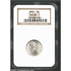 1890 5C MS65 NGC. Satiny and completely brilliant, with a bright, frosty appearance that is the equa