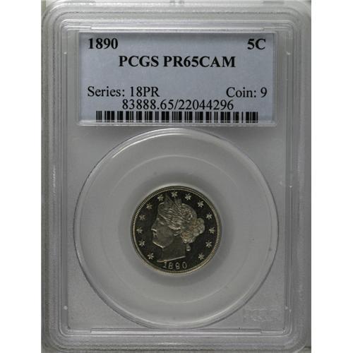 1890 5C PR65 Cameo PCGS. The boldly impressed, lightly