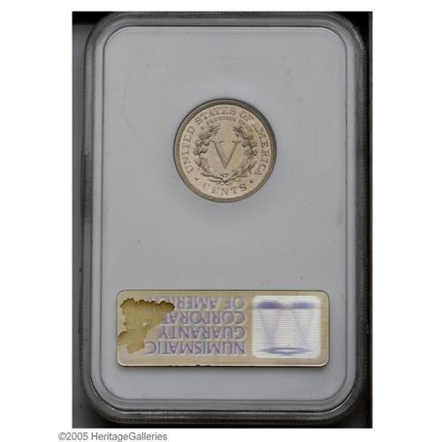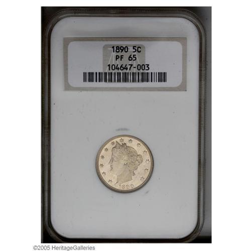 1890 5C PR65 NGC. Bright surfaces are covered in light 1890[5C] PR65 NGC.