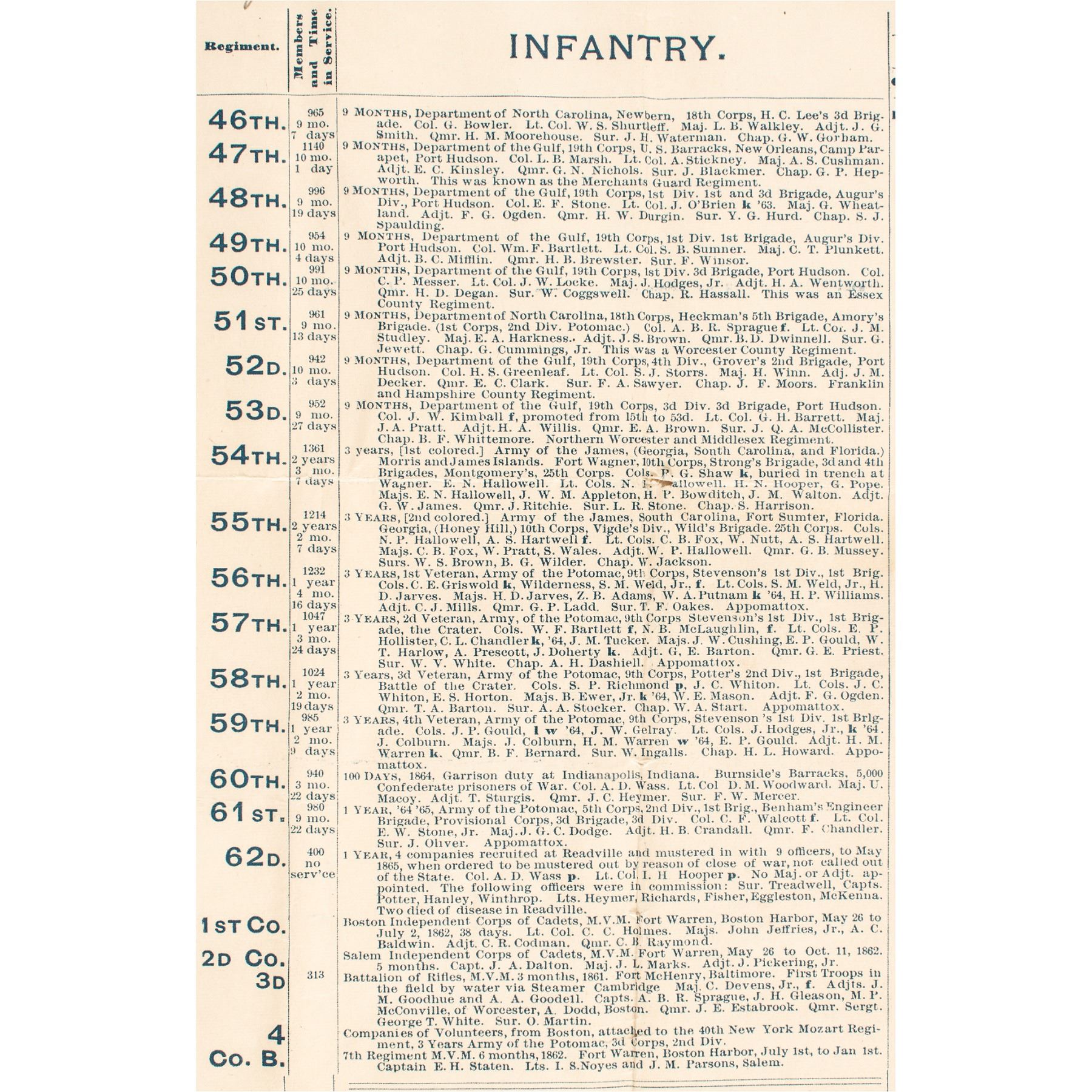 What follows is an exhaustive compilation of historic information concerning Massachusetts Military Service during the American Civil War. This cataloger has not been able to locate another example of this wonderful impressive Broadside existent in an online search. This Broadside is fresh to market, out of an old archive of ephemera from a prominent North Andover, Massachusets family estate. This extraordinary G.A.R. Broadside would look highly impressive once flattened and properly framed for display.