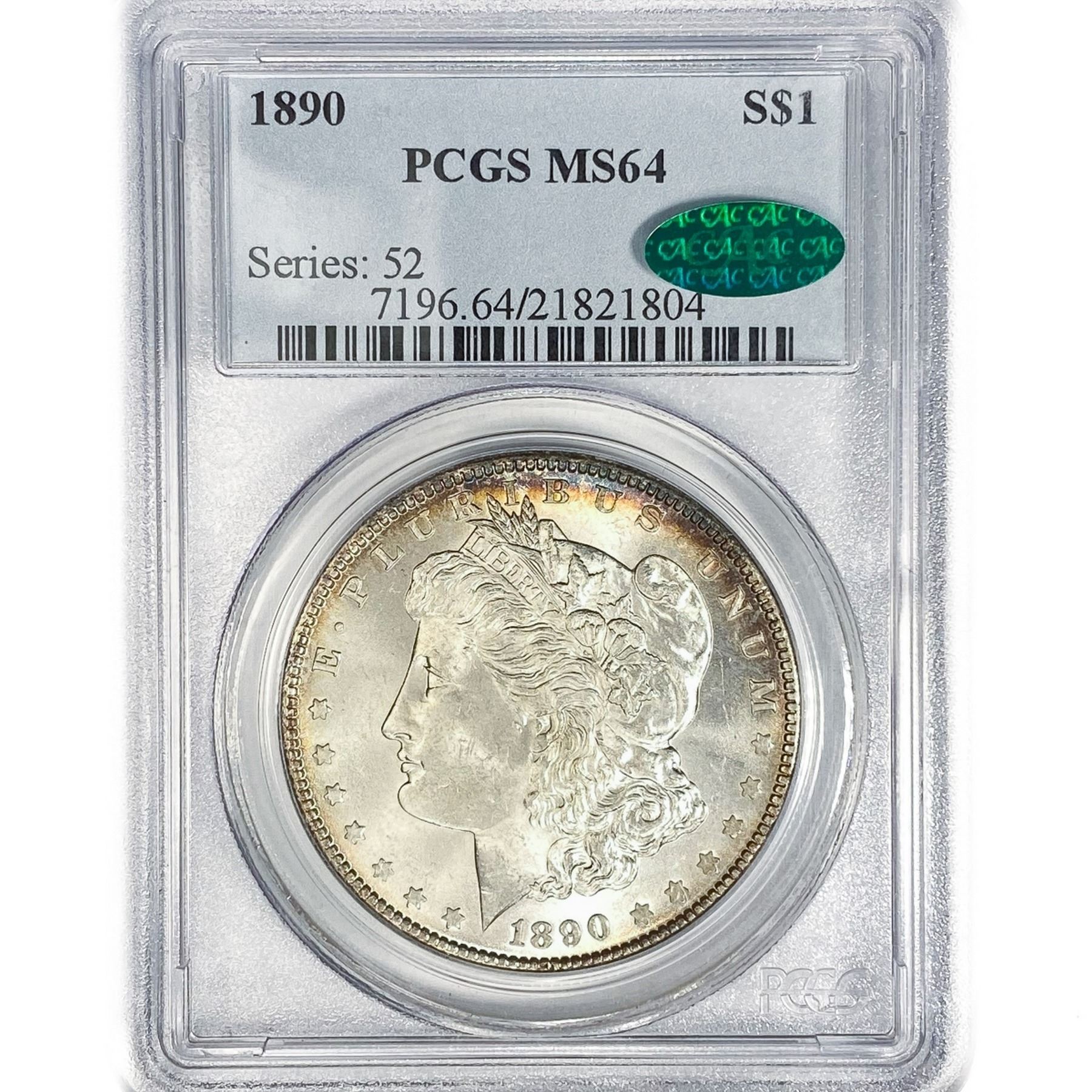 1890 CAC Morgan Silver Dollar PCGS MS64