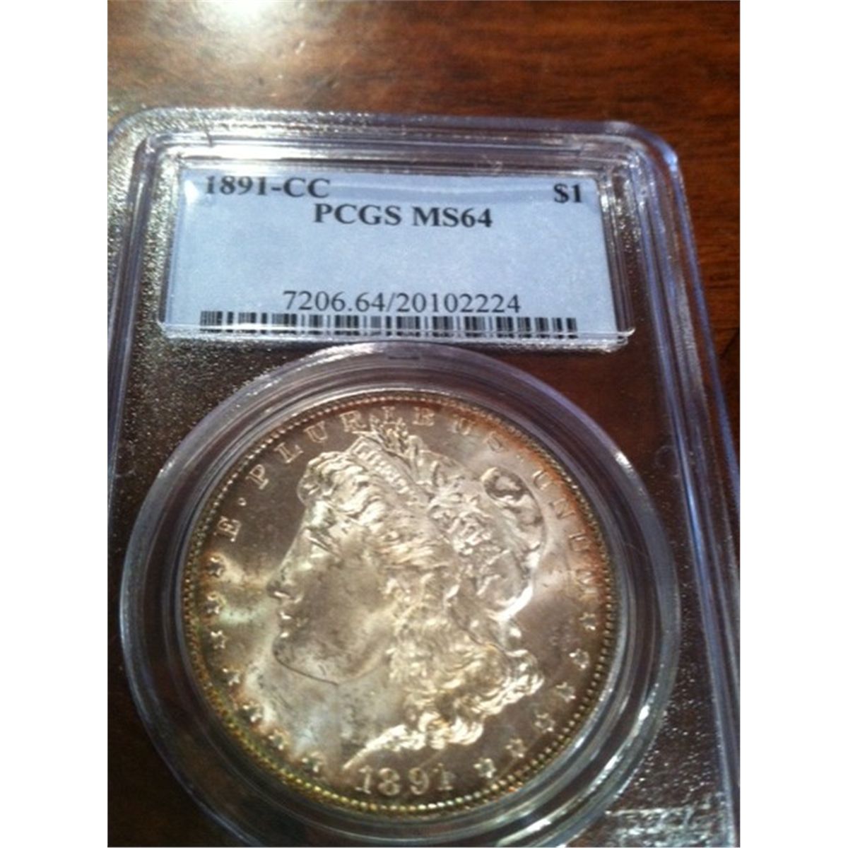 1890 CARSON CITY MORGAN DOLLAR PCGS MS-64 WITH BEAUTIFUL GOLD "HALO" ON BOTH SIDES