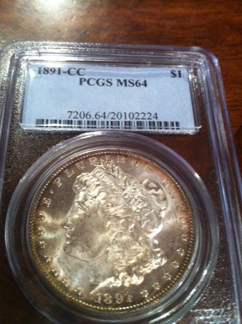 1890 CARSON CITY MORGAN DOLLAR PCGS MS-64 WITH BEAUTIFUL GOLD "HALO" ON BOTH SIDES