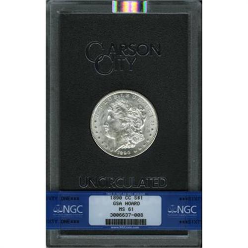 <B>1890-CC $1 MS61 NGC.</B></I> A fully brilliant Mint State piece with noticeable marks on the obverse. The reverse is substantially nicer.<BR><BR><B>Coin Engraver:</B> George T. Morgan<BR><BR><b>Shipping:</b> Coins & Currency (<a target="_blank" href="http://www.heritageauctions.com/common/shipping.php">view shipping information</a>)