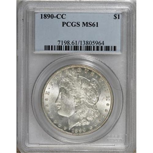 <B>1890-CC $1 MS61 PCGS.</B></I> PCGS Population (485/6310). NGC Census: (266/2809). Mintage: 2,309,041. Numismedia Wsl. Price for NGC/PCGS coin in MS61: $375. (#7198)<BR><BR><B>Coin Engraver:</B> George T. Morgan<BR><BR><b>Shipping:</b> Coins & Currency (<a target="_blank" href="http://www.heritageauctions.com/common/shipping.php">view shipping information</a>\)