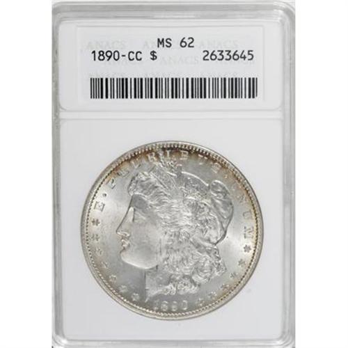 <B>1890-CC $1 MS62 ANACS.</B></I> NGC Census: (838/1943). PCGS Population (1795/4469). Mintage: 2,309,041. Numismedia Wsl. Price for NGC/PCGS coin in MS62: $475. (#7198)<BR><BR><B>Coin Engraver:</B> George T. Morgan<BR><BR><b>Shipping:</b> Coins & Currency (<a target="_blank" href="http://www.heritageauctions.com/common/shipping.php">view shipping information</a>\)