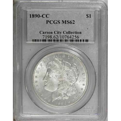 <B>1890-CC $1 MS62 PCGS.</B></I> Ex: Carson City Collection. PCGS Population (1795/4469). NGC Census: (832/1938). Mintage: 2,309,041. Numismedia Wsl. Price for NGC/PCGS coin in MS62: $450. (#7198)<BR><BR><b>Shipping:</b> Coins & Currency (<a target="_blank" href="http://www.heritageauctions.com/common/shipping.php">view shipping information</a>)