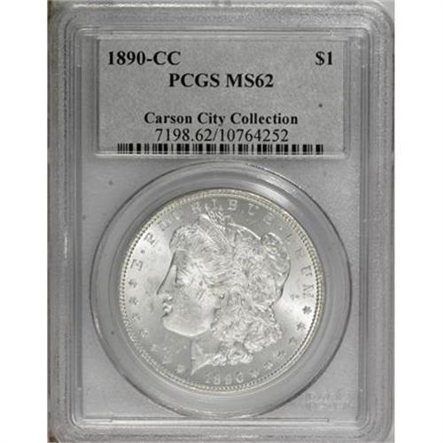 <B>1890-CC $1 MS62 PCGS.</B></I> Ex: Carson City Collection. PCGS Population (1795/4469). NGC Census: (832/1938). Mintage: 2,309,041. Numismedia Wsl. Price for NGC/PCGS coin in MS62: $450. (#7198)<BR><BR><b>Shipping:</b> Coins & Currency (<a target="_blank" href="http://www.heritageauctions.com/common/shipping.php">view shipping information</a>)