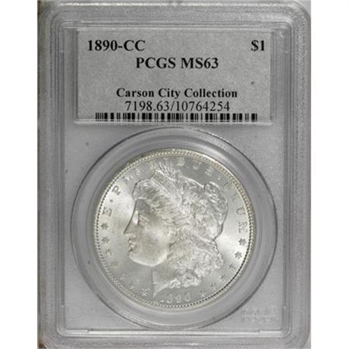 <B>1890-CC $1 MS63 PCGS.</B></I> Ex: Carson City Collection. Lightly toned and lustrous with smooth fields and only faint grazes on the cheek. A small spot is noted between the TE in STATES.<BR><BR><b>Shipping:</b> Coins & Currency (<a target="_blank" href="http://www.heritageauctions.com/common/shipping.php">view shipping information</a>)