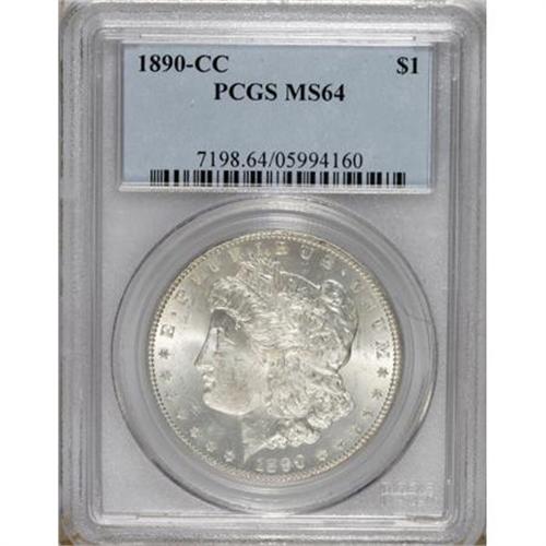 <B>1890-CC $1 MS64 PCGS.</B></I> A well executed strike brings out sharp detail on the design elements, including the hair over Liberty's ear and the eagle's breast feathers. Both sides are awash in dazzling luster, each displaying barely discernible wisps of light tan on portions of the central devices. A scattering of minute marks define the grade.<BR><BR><b>Shipping:</b> Coins & Currency (<a target="_blank" href="http://www.heritageauctions.com/common/shipping.php">view shipping information</a>)
