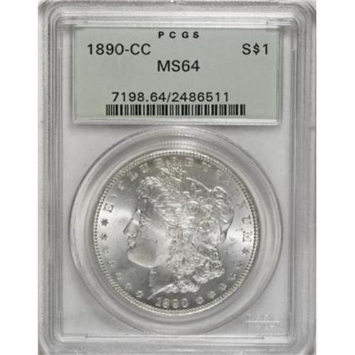 <B>1890-CC $1 MS64 PCGS.</B></I> Fully struck and brilliant throughout. The surfaces are notably free from abrasions and the coin is clearly suggestive of an even higher grade.<BR><BR><B>Coin Engraver:</B> George T. Morgan<BR><BR><b>Shipping:</b> Coins & Currency (<a target="_blank" href="http://www.heritageauctions.com/common/shipping.php">view shipping information</a>)