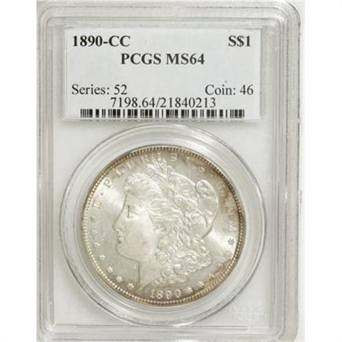 <B>1890-CC $1 MS64 PCGS.</B></I> An attractive near-Gem example of this popular later Carson City dollar issue, well struck with hints of watermelon-red patina at the margins. Liberty's cheek is clean, though an abrasion is noted just to the right of the lips.<BR><BR><B>Coin Engraver:</B> George T. Morgan<BR><BR><b>Shipping:</b> Coins & Currency (<a target="_blank" href="http://www.heritageauctions.com/common/shipping.php">view shipping information</a>)