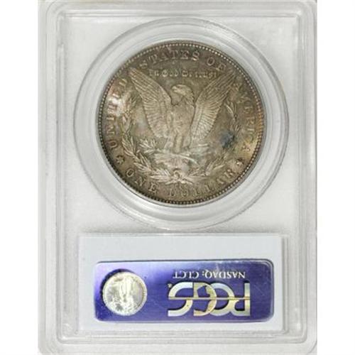 <B>1890-CC $1 MS64 PCGS.</B></I> The scintillating color palette on this delightful near-Gem comprises copper-orange, sky-blue, and jade-green, none of them heavy or opaque, but rather fairly translucent, so that the radiant luster shines forth. A single small spot of dark toning is noted on the right (facing) reverse wreath. The strike is bold if not full, and the only mentionable abrasion is a tick on the lower eagle's breast. A delectable--and collectible--example.<BR><BR><B>Coin Engraver:</B> George T. Morgan<BR><BR><b>Shipping:</b> Coins & Currency (<a target="_blank" href="http://www.heritageauctions.com/common/shipping.php">view shipping information</a>)
