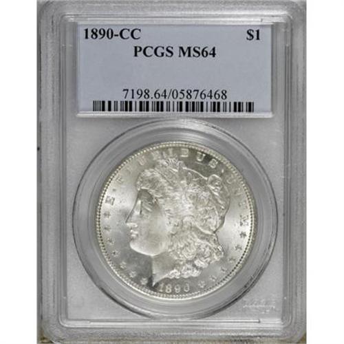 <B>1890-CC $1 MS64 PCGS.</B></I> Exuberant luster and an attentive strike are the prominent characteristics of this carefully preserved and nearly brilliant near-Gem. A better Carson City issue that is always in demand.<BR><BR><B>Coin Engraver:</B> George T. Morgan<BR><BR><b>Shipping:</b> Coins & Currency (<a target="_blank" href="http://www.heritageauctions.com/common/shipping.php">view shipping information</a>)