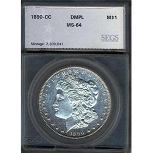 Though housed in MS64 Deep Mirror SEGS holder, there is just enough lack of vibrancy and cloudiness to take it down a point, although all in all 1890-CC has respectable levels of mirror reflective quality in the fields, no doubt from being struck early in the dies’ life.