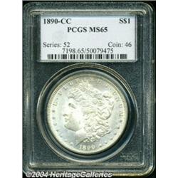 <table><tbody><tr><td><table> <TR><TD width="100%"><TABLE cellSpacing=1 cellPadding=3 width="100%" border=0><TBODY><TR><TD width="100%" bgColor=#79735c><FONT face=arial color=#ffffff size=3><B>Description</B> </FONT></TD></TR><TR><TD width="100%" bgColor=#ffffff><FONT face=arial size=2><B>1890-CC $1 MS65 PCGS.</B></I> More than 2.3 million pieces were struck of the 1890-CC, a substantial mintage from this mint. Many were distributed at the time and many thousands more were paid out on both coasts in bag quantities between the early 1930s and 1964. Apparently few were of strict Gem quality, however, as only 156 pieces have been so graded by PCGS with eight finer (10/03). This is a sharply struck coin with no obvious or distracting abrasions on the obverse. Pearl-gray throughout with thick, satiny luster. </FONT></TD></TR></TBODY></TABLE></TD></TR></TBODY></TABLE><BR><A name=PricesRealized></A><TABLE cellSpacing=0 cellPadding=0 width="100%" bgColor=#000000 border=0><TBODY><TR><TD width="100%"><TABLE cellSpacing=1 cellPadding=3 width="100%" border=0><TBODY><TR><TD width="100%" bgColor=#79735c><A name=PR><FONT face=arial color=#ffffff size=3><B>Previous Prices from Heritage Auctions</B> </FONT></A></TD></TR><TR><TD bgColor=#f6f6ed><TABLE cellSpacing=0 cellPadding=0 width="100%" border=1><TBODY><TR><TD align=middle width="33%"><B>Date</B></TD><TD align=middle width="33%"><B>Service</B></TD><TD align=middle width="33%"><B>Price</B></TD></TR><TR bgColor=whitesmoke><TD width="33%"><B>01/07/2004</B></TD><TD width="33%">NGC</TD><TD width="33%">$4,485.00</TD></TR><TR bgColor=whitesmoke><TD width="33%"><B>09/20/2003</B></TD><TD width="33%">PCGS</TD><TD width="33%">$6,037.50</TD></TR><TR bgColor=whitesmoke><TD width="33%"><B>01/11/2003</B></TD><TD width="33%">PCGS</TD><TD width="33%">$5,175.00</TD></TR><TR bgColor=whitesmoke><TD width="33%"><B>09/28/2002</B></TD><TD width="33%">PCGS</TD><TD width="33%">$3,795.00</TD></TR><TR bgColor=whitesmoke><TD width="33%"><B>04/27/2002</B></TD><TD width="33%">PCGS</TD><TD width="33%">$6,612.50</TD></TR><TR bgColor=whitesmoke><TD width="33%"><B>08/08/2001</B></TD><TD width="33%">PCGS</TD><TD width="33%">$3,450.00</TD></TR><TR bgColor=whitesmoke><TD width="33%"><B>05/31/2001</B></TD><TD width="33%">PCGS</TD><TD width="33%">$3,680.00</TD></TR><TR bgColor=whitesmoke><TD width="33%"><B>10/06/2000</B></TD><TD width="33%">ANACS</TD><TD width="33%">$2,530.00</TD></TR><TR bgColor=whitesmoke><TD width="33%"><B>06/06/1998</B></TD><TD width="33%">PCGS</TD><TD width="33%">$4,830.00</TD></TR><TR bgColor=whitesmoke><TD width="33%"><B>09/13/1997</B></TD><TD width="33%">PCGS</TD><TD width="33%">$5,865.00</TD></TR><TR bgColor=whitesmoke><TD width="33%"><B>02/16/2000</B></TD><TD width="33%">PCGS</TD><TD width="33%">$4,428.00</TD></TR><TR bgColor=whitesmoke><TD width="33%"><B>06/01/2001</B></TD><TD width="33%">PCGS</TD><TD width="33%">$4,025.00</TD></TR><TR bgColor=whitesmoke><TD width="33%"><B>02/18/2002</B></TD><TD width="33%">PCGS</TD><TD width="33%">$4,140.00</TD></TR><TR bgColor=whitesmoke><TD width="33%"><B>01/01/1997</B></TD><TD width="33%">PCGS</TD><TD width="33%">$2,970.00</TD></TR><TR bgColor=whitesmoke><TD width="33%"><B>03/01/2000</B></TD><TD width="33%">PCGS</TD><TD width="33%">$4,600.00</TD></TR><TR bgColor=whitesmoke><TD width="33%"><B>03/01/1999</B></TD><TD width="33%">NGC</TD><TD width="33%">$3,450.00</TD></TR><TR bgColor=whitesmoke><TD width="33%"><B>02/01/2000</B></TD><TD width="33%">PCGS</TD><TD width="33%">$5,750.00</TD></TR><TR bgColor=whitesmoke><TD width="33%"><B>06/01/2000</B></TD><TD width="33%">PCGS</TD><TD width="33%">$4,370.00</TD></TR><TR bgColor=whitesmoke><TD width="33%"><B>08/01/1999</B></TD><TD width="33%">PCGS</TD><TD width="33%">$5,060.00</TD></TR></TBODY></TABLE></TD></TR><TR><TD bgColor=#ffffff><FONT face=arial size=1 ?>PLEASE NOTE: All prices realized reflect the final hammer price PLUS the buyer's premium in auctions that charge a buyer's premium. Each item has a notation at the top of the listing indicating whether that lot included a buyer's premium. Example: A item that sells with a final hammer price of $100 and a 20% buyer's premium will display with a price realized of $120. All information listed is intended to be as accurate as possible, but errors are possible. Please use this guide carefully and inform us of any inaccuracies. </FONT></TD></TR></TBODY></TABLE></TD></TR></TBODY></TABLE><BR><TABLE cellSpacing=0 cellPadding=0 width="100%" bgColor=#000000 border=0><TBODY><TR><TD width="100%"><TABLE cellSpacing=1 cellPadding=3 width="100%" border=0><TBODY><TR><TD width="100%" bgColor=#79735c colSpan=6><FONT face=arial color=#ffffff size=3><B>Price Guide*</B> </FONT></TD></TR><TR bgColor=#f6f6ed><TD align=middle><B>Grade</B> </TD><TD align=middle><B>Coin World<BR>(Trends)</B> </TD><TD align=middle><B>Numismedia<BR>Retail</B> </TD><TD align=middle><B>Numismedia<BR>Wholesale</B> </TD><TD align=middle><B>Coin<BR>Universe</B> </TD><TD align=middle><B>Heritage<BR>Value Index</B> </TD></TR><TR bgColor=#ffffff><TD align=middle>64</TD><TD align=right>$1,400.00</TD><TD align=right>---</TD><TD align=right>$840.00</TD><TD align=right>$1,075.00</TD><TD align=right>$889.38</TD></TR><TR style="FONT-WEIGHT: bold" bgColor=#cccfdd><TD align=middle>65</TD><TD align=right>$6,800.00</TD><TD align=right>---</TD><TD align=right>$4,575.00</TD><TD align=right>$6,250.00</TD><TD align=right>$4,596.25</TD></TR><TR bgColor=#ffffff><TD align=middle>66</TD><TD align=right>$20,000.00</TD><TD align=right>---</TD><TD align=right>$13,500.00</TD><TD align=right>$14,000.00</TD><TD align=right>$12,883.33</TD></TR><TR bgColor=#ffffff><TD colSpan=6><FONT size=1>*All information listed is intended to be as accurate as possible, but errors are possible. No item may be returned or refused based on this information which is provided as a service to our customers. You should contact each pricing source directly to determine the accuracy of this information. </FONT></TD></TR></TBODY><