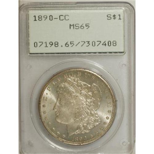 <B>1890-CC $1 MS65 PCGS.</B></I> This crisply struck Gem is patinated in delicate caramel-gold shades that yield to a few slender swaths of golden-brown color on the reverse. Minute carbon flecks are distributed. A well preserved representative of this conditionally challenging CC-mint delivery. Encapsulated in a first generation holder.<BR><BR><B>Coin Engraver:</B> George T. Morgan<BR><BR><b>Shipping:</b> Coins & Currency (<a target="_blank" href="http://www.heritageauctions.com/common/shipping.php">view shipping information</a>\)