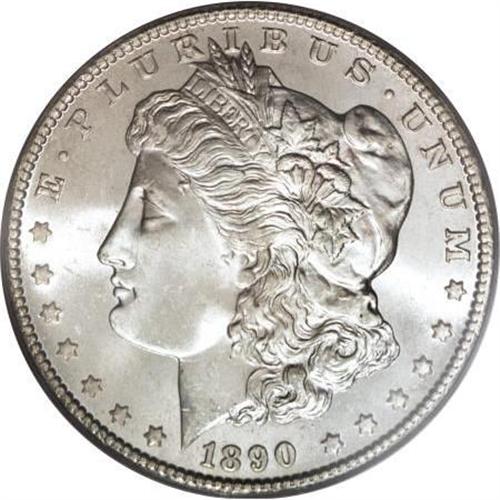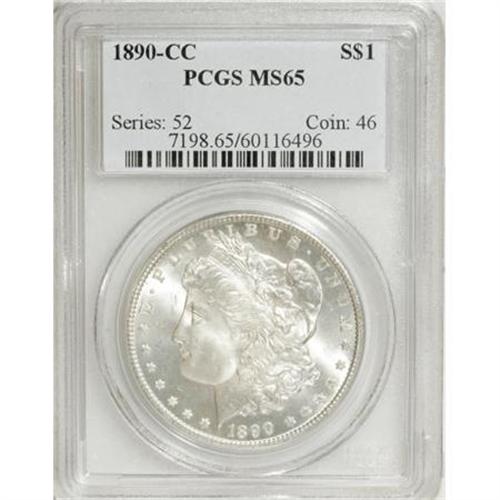 <B>1890-CC $1 MS65 PCGS.</B></I> This high mintage CC dollar is not as available as the 2.3 million coins struck would indicate. Unlike many high grade '90-CC dollars, this piece shows little of the reflective fields that are often encountered. Brilliant throughout, the surfaces on this piece are bright and thickly frosted. Sharply defined.<BR><I>From The Jimmy G. PCGS Registry Collection of Morgan Dollars with Varieties.</B></I><BR><BR><B>Coin Engraver:</B> George T. Morgan<BR><BR><b>Shipping:</b> Coins & Currency (<a target="_blank" href="http://www.heritageauctions.com/common/shipping.php">view shipping information</a>)