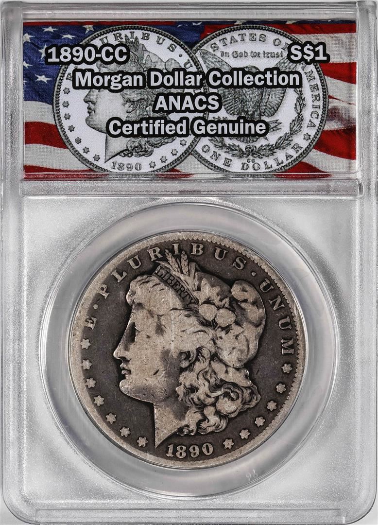 One 1890-CC $1 Morgan Silver Dollar Coin ANACS Genuine. ANACS Certified.