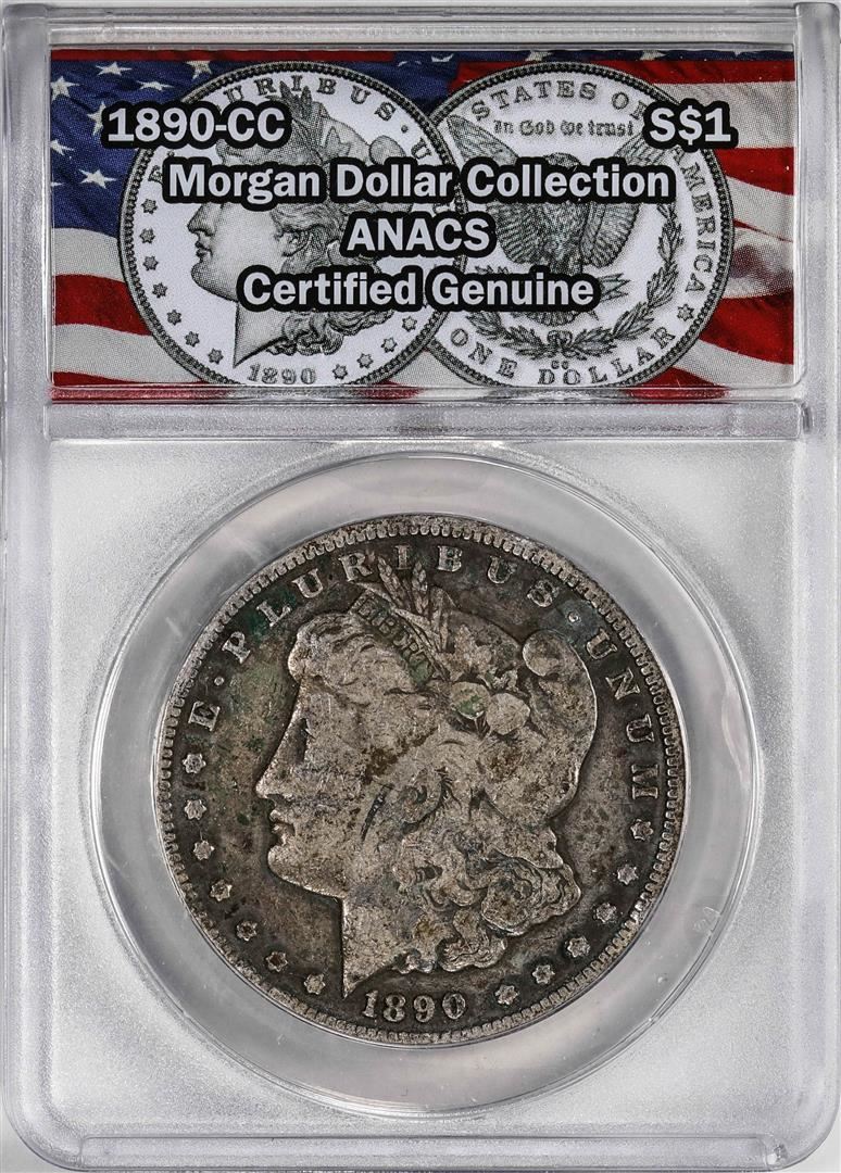 One 1890-CC $1 Morgan Silver Dollar Coin ANACS Genuine. ANACS Certified.