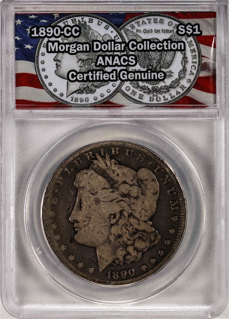 One 1890-CC $1 Morgan Silver Dollar Coin ANACS Genuine. ANACS Certified.
