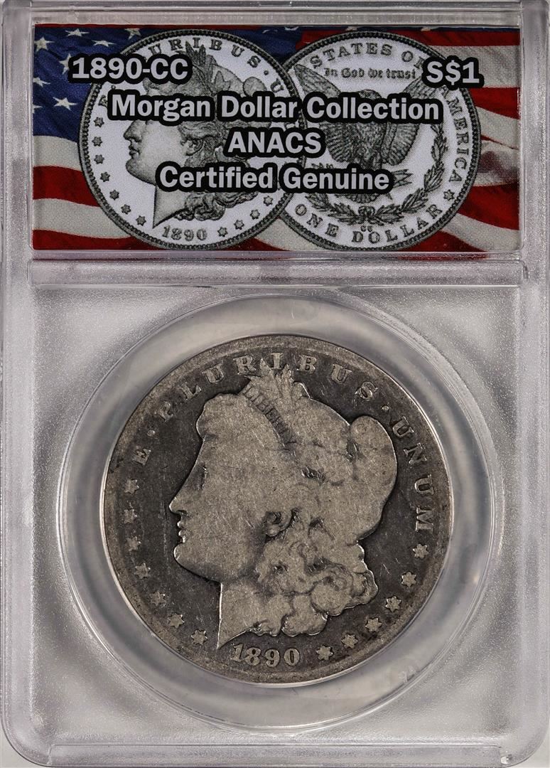 One 1890-CC $1 Morgan Silver Dollar Coin ANACS Genuine. ANACS Certified.