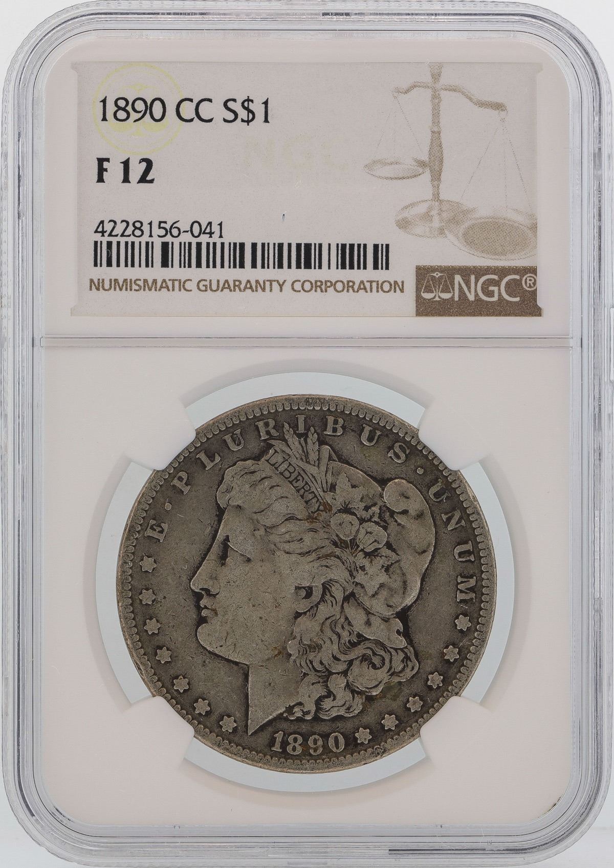 One 1890-CC $1 Morgan Silver Dollar Coin NGC F12.