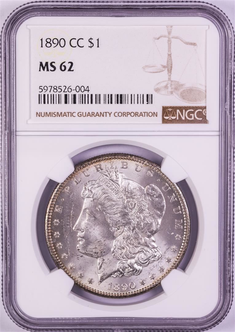 One 1890-CC $1 Morgan Silver Dollar Coin NGC MS62. NGC Certified.