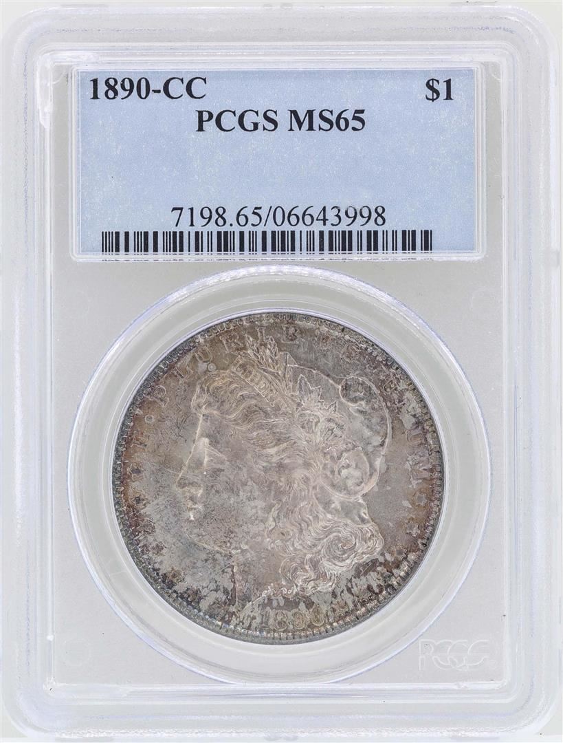 One 1890-CC $1 Morgan Silver Dollar Coin PCGS MS65. PCGS Graded.