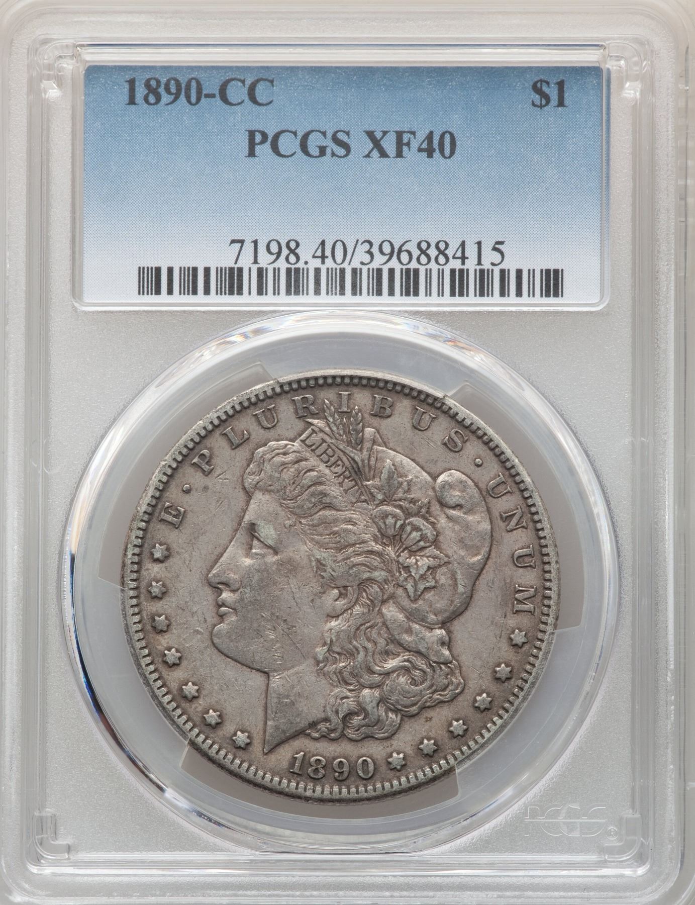 One 1890-CC $1 Morgan Silver Dollar Coin PCGS XF40.