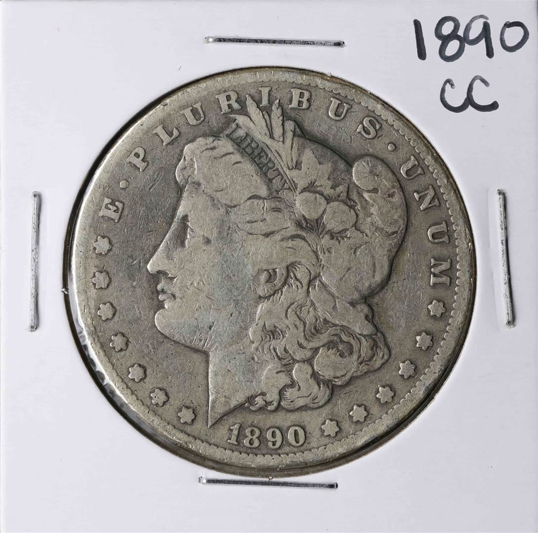 One 1890-CC $1 Morgan Silver Dollar Coin.