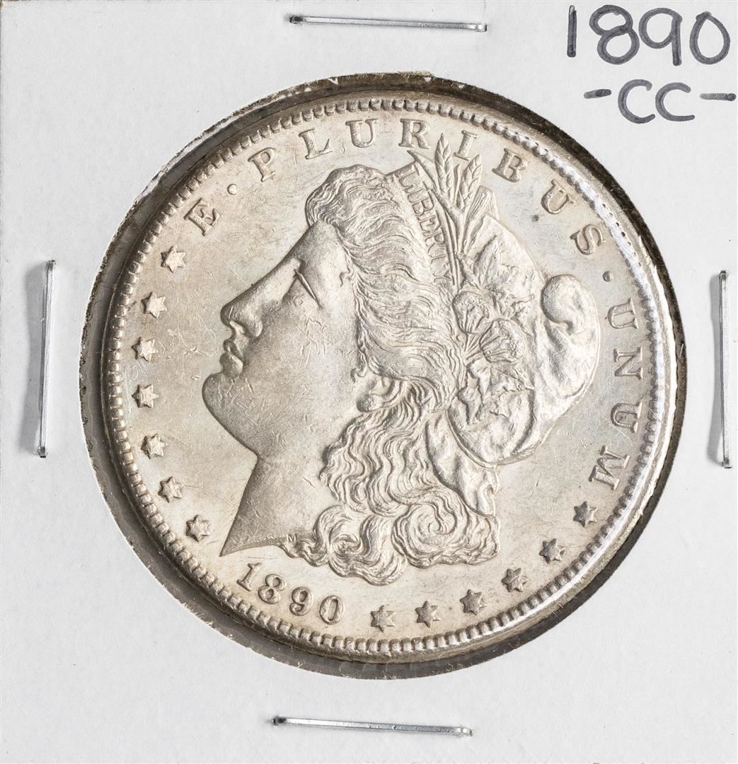 One 1890-CC $1 Morgan Silver Dollar Coin.