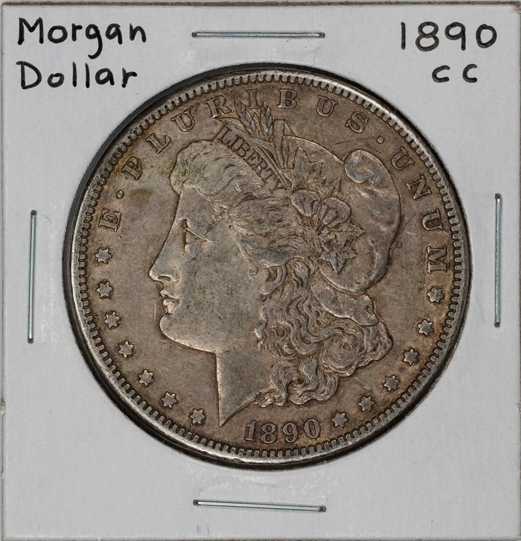 One 1890-CC $1 Morgan Silver Dollar Coin.