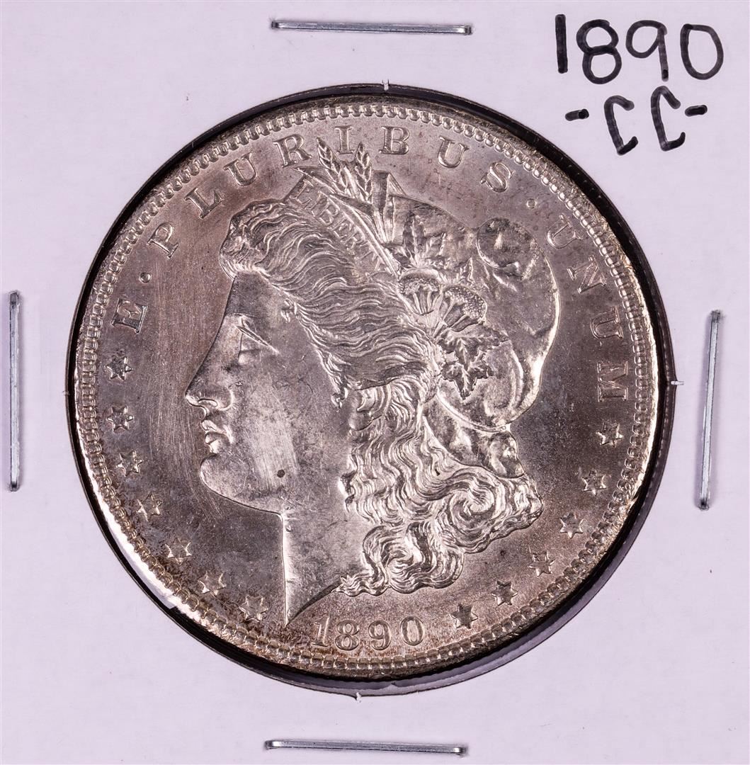 One 1890-CC $1 Morgan Silver Dollar Coin.